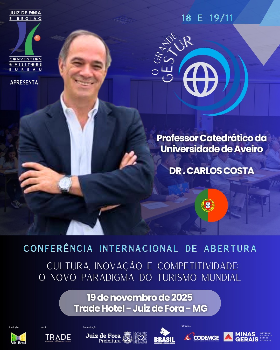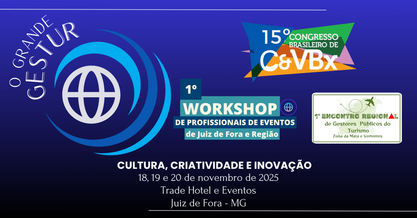 DIAS 18 A 20 DE NOVEMBRO DE 2025, O JUIZ DE FORA CONVENTION & VISITORS BUREAU TE CONVIDA PARA UMA IMERSÃO DE CONHECIMENTO, NETWORK E INSPIRAÇÃO COM O TEMA: CULTURA, CRIATIVIDADE E INOVAÇÃO NO TURISMO E NOS EVENTOS.